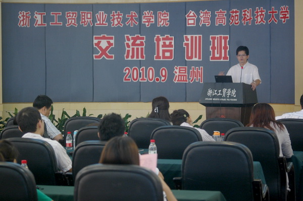 9月5日至12日,台湾高苑科技大学师生一行22人(21名学生,1名老师)来我院进行学习交流。学习交流期间,两校师生共同参加《温州台商投资及发展》《台湾与温州企业管理模式比较》《中国货物通关实务》《中国海关进口税则介绍》等相关课程的学习,并参观了泰庆皮革有限公司等台商企业、与台湾企业家座谈、举行两校师生体育交流和联谊活动等项目。在6日上午我院举行的欢迎及开班仪式上,我院院长助理张俊平、温州市台办副主任钱进、教务处处长台新民等向台湾师生介绍了我院及温州的基本情况。