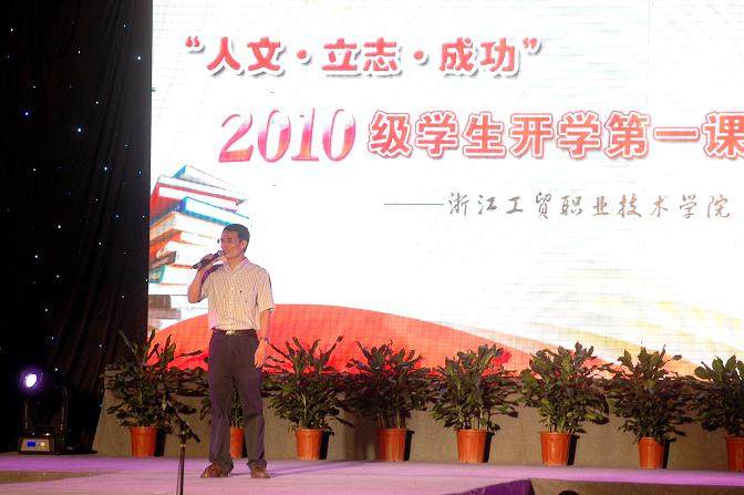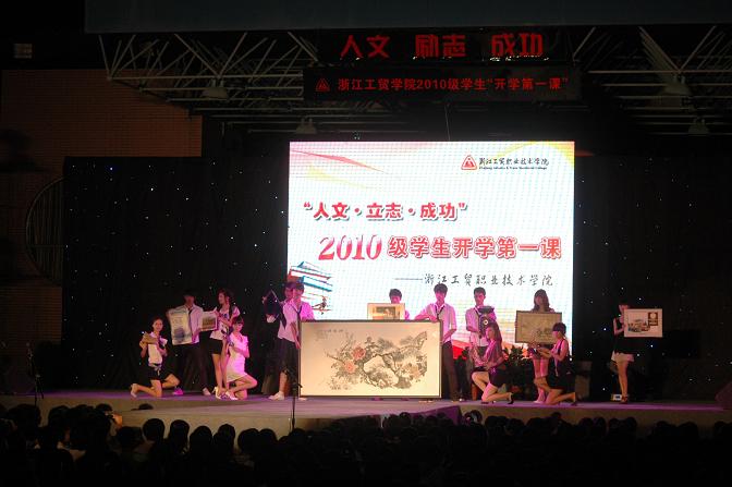 今年的开学“第一课”突破以往开学典礼形式单一的传统风格,采用师生联动的晚会形式,始终贯穿“人文、励志、成功”这一主题。我院党委书记、院长何向荣教授给大一新生上了“第一课”,在“课堂上”,何院长对全体大一新生的到来表示了热烈欢迎,希望他们在接下来的三年里奋发进取,锐意创新,争取实现人生新的迈跃。强调了创新对个人、对学院、对社会发展的重要性,何院长的讲话既有理论的深刻性,又有事实的典型性,赢得了在座师生的热烈响应。学生模特向3000多名刚刚加入工贸大家庭的大一新生展示了近几年我院师生的优秀获奖作品和科研成果。在晚会上,还举行了“我最喜爱的十大老师”颁奖仪式,我院第三届十佳学子为潘修强等10名我院首届“我最喜爱的老师”颁奖。为鼓励新生奋发学习,积极进取,我院对浙江省文理科各前5名的同学颁发了新生奖学金18000元。而我院优秀校友代表孙治建、孙应敏、周明星等在典礼上与学弟学妹们分享自己在大学学习、生活中的经验,指导他们更快地适应大学校园生活。最后学院领导和教师代表为新生代表佩戴上了象征身份的校徽。