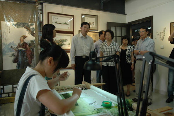 民盟中央副主席、省政协副主席徐辉在我院浙江创意园内瓯绣工作室考察