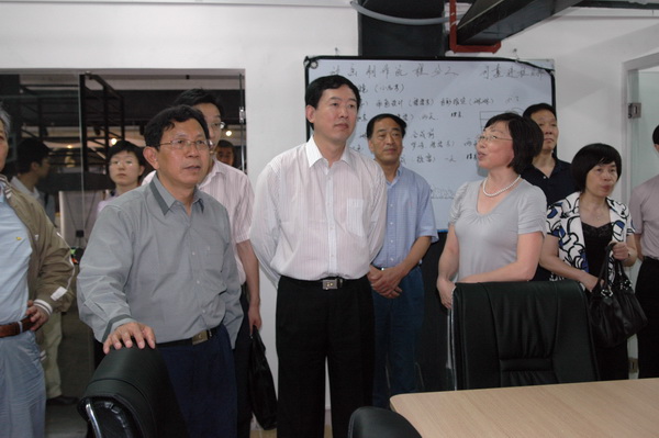 民盟中央副主席、省政协副主席徐辉在我院浙江创意园内动漫工作室考察