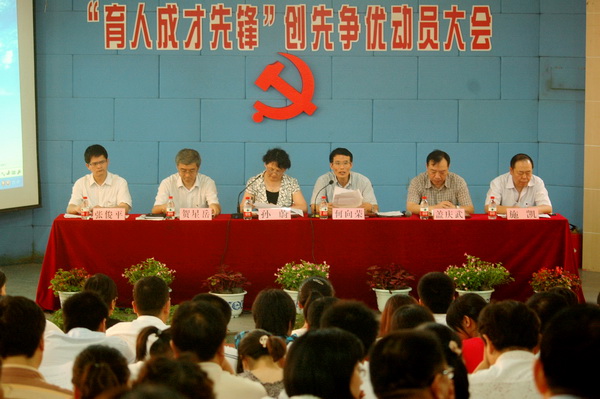 6月28日下午,学院“育人成才先锋”创先争优动员大会隆重召开,学院党政领导班子成员,全体党员、全体干部、全体教师包括科研人员,教务处、学生处、高职研究所、校企合作办等一线部门行政人员出席本次大会,会议由学院副书记、副院长孙蔚主持。