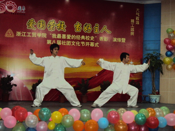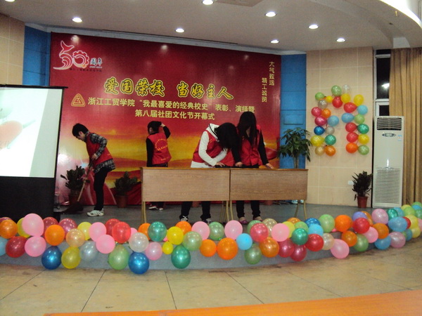 作为第八届社团文化节的重要内容,各社团精心演绎了经典校史。他们分别用诗歌、舞蹈、武术、话剧等各种文艺形式演绎了许多经典校史的片段,表达了学生对母校50华诞的深深祝福和崇敬之情,赢得了现场同学的一致好评。最后,体育健身类协会摘得了本次开幕式的“最佳展示奖”。