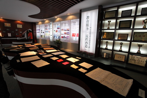 为喜迎浙江工贸职业技术学院建校50周年,同时贯彻落实教育部、共青团中央《关于加强和改进高等学校校园文化建设的意见》之“要写好校史、建好校史陈列室,通过资料记载和实物展示,生动形象地反映学校办学历程,激励大学生继承和弘扬学校优良传统”要求,在学院党务工作部、校庆办有关工作人员的努力之下,校史室于校庆前夕正式对外开放。