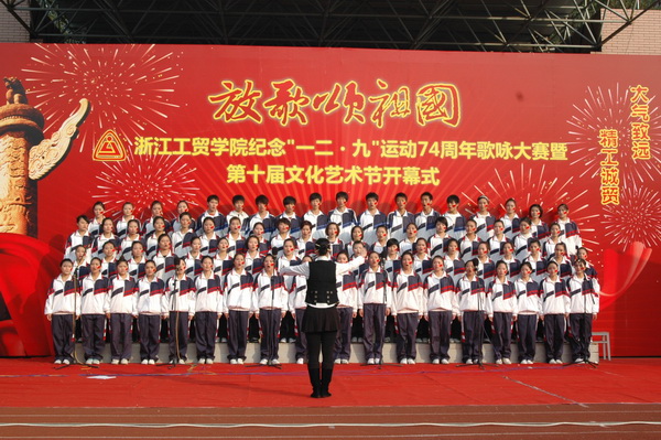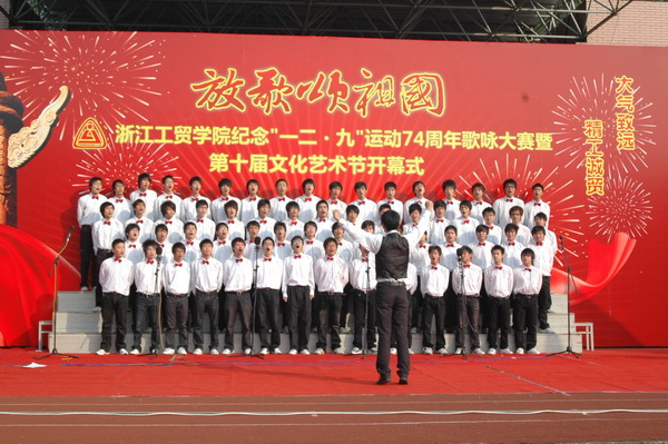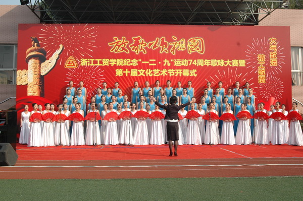 12月6日下午,我院以纪念“一二·九”运动74周年为主题的歌咏大赛在学院运动场举行,本次比赛也是学院第十届文化艺术节的开幕式,由院学生处、团委主办。来自全院7个系(部)的合唱团参加了此次比赛,为大家献上了一场视觉和听觉上的大餐。