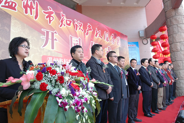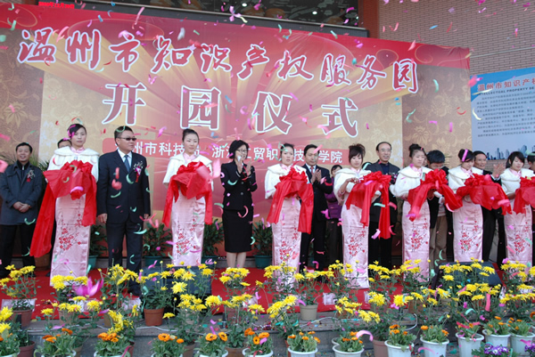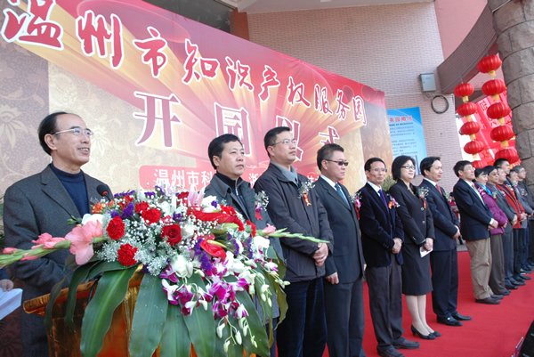 2009年12月30日上午,经过紧张建设及试运行的温州市知识产权服务园举行了隆重的开园仪式,国家知识产权局原局长王景川、国家知识产权局专利管理司司长马维野、温州市市长赵一德、浙江省知识产权局副局长陈龙根、温州市副市长徐育斐、上海同济大学知识产权学院院长陶鑫良、温州市科技局局长王北铰、副局长金作崇及我院院长何向荣、副院长盖庆武、贺星岳等领导出席了开园仪式。
