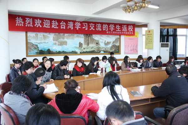 座谈会上,国贸07(1)班郑茗耀同学代表12名赴台学生采用PPT向在座的老师们详细汇报了在台湾学习、生活等方面的情况,并对学院给他们提供学习交流的平台表示衷心的感谢。通过交流,我们了解到:高苑科技大学老师授课注重对企业的实际运作情况实际案例进行分析;授课过程注重学生实际调研能力的培养,要求学生组队到课程相关机构如银行、远东自由贸易港区、对外贸易协会进行调研访谈并制作PPT汇报,撰写心得;课程的考核注重过程和基础知识的考核。与会教师还就台湾教育、经济等方面展开了广泛深入的交流,现场气氛融洽而热烈,通过交流,让在座的教师受益匪浅。