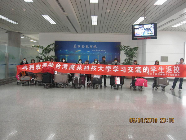 我院首批赴台湾高苑科技大学交流学习,由成荣芬老师带队于2009年9月5日启程,分两个专业分别参加高苑科技大学国际商务系、应用外语系的学习,周课时26节,07级学生还完成了毕业设计。在交流学习期间,我院学生积极参加高苑科技大学的各项文体活动如台湾原住民舞蹈大赛、高苑科技大学20周年校庆等,我院学生严密的组织纪律性和学习的主动性受到了高苑科技大学师生的高度评价,为台湾高苑科技大学学生树立了榜样,充分展现了工贸学子的优良品质。