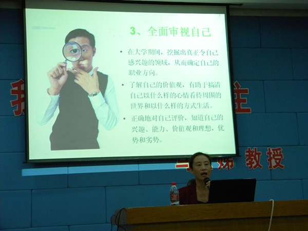 近日,我院在阶梯教室举行了“我的大学谁做主”专题讲座,由学生处马兰娣教授为大一新生指点迷津。