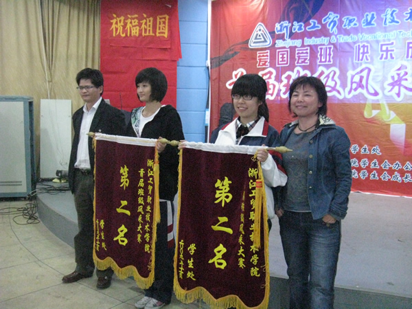 11月3日晚,学院首届班级风采大赛决赛隆重举行。本次大赛“以爱国爱班,快乐成才”为主题,由学生处主办,院学生会承办,邀请院长助理张俊平、学生处处长王春柳,刘基文化研究所所长俞美玉以及浙江创意园公关部经理杨晓珍担任评委。