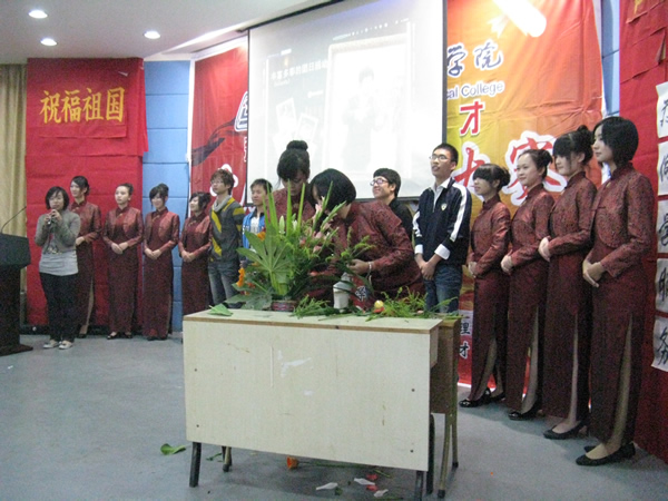 在第二轮的才艺表演环节,各个班级更是尽其所能,充分展现了各班成员的多才多艺。国贸0801班的代表为大家献上了一支孔雀舞;人力资源0802班的同学将才艺表演的专业特色相结合,为在座观众现场表演起插花艺术;此外,有的班级还表演了小品、电子琴、葫芦丝以及跆拳道等才艺。整场比赛精彩绝伦,掌声一浪高过一浪。