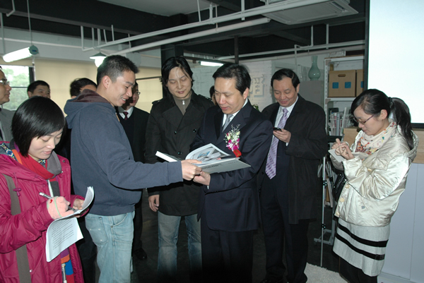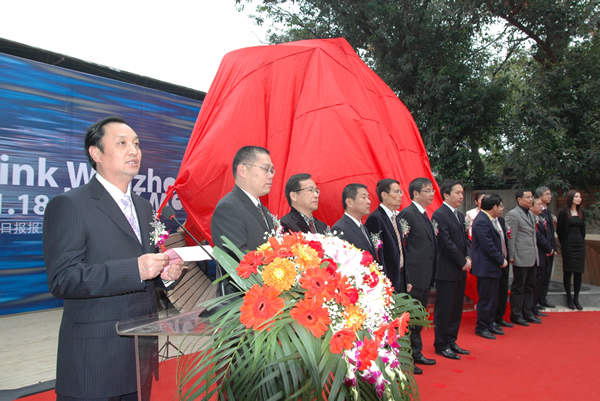 温州市委副书记市长赵一德、杭钢集团总经理李世中、温州市政府秘书长黄纯诚、温州市委副秘书长谢浩、温州市文化广电新闻出版局局长吴东、温州市委宣传部副部长徐顺聪、温州市规划局副局长郑晓东、温州市经贸委副主任游聚森等领导及创意文化相关产业协会、企业代表、学院师生等参加了活动。仪式由温州日报报业集团党委书记、社长何建平主持,我院党委书记院长何向荣教授、宣传部徐顺聪副部长、杭钢集团李世中总经理分别致辞,赵一德市长宣布开园。我院大三学生、今年刚获得“亚洲小姐”最佳上镜奖的王津津同学也作为学生代表与嘉宾们共同为创意园开园揭幕。