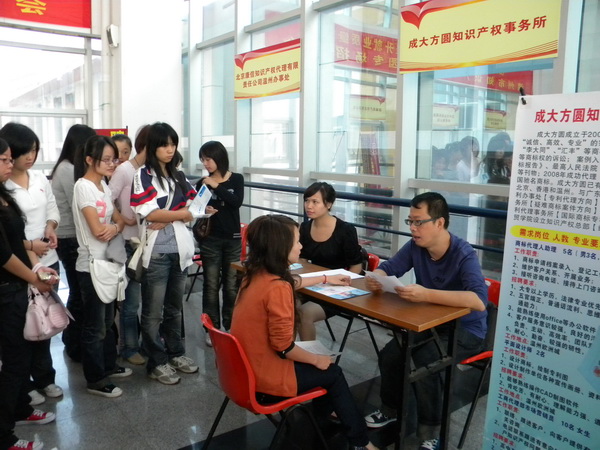 10月25日,我院知识产权服务园在六号楼举办了2010届毕业生专场招聘会,本次招聘会由学生处和知识产权服务园共同举办,招聘单位为温州市知识产权服务园入驻公司,招聘对象为学院毕业生。