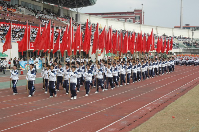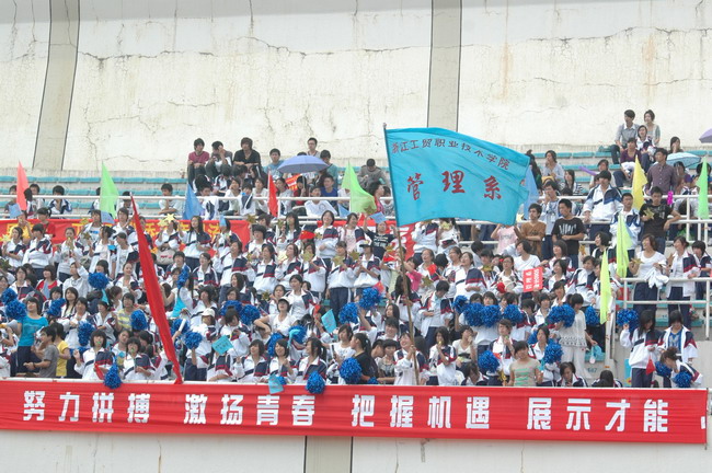 浙江工贸职业技术学院2009年运动会10月31日在温州市体育中心隆重举行,开幕式上,党委书记、院长何向荣、校院领导、各系部负责人出席了开幕式。我院9个系部的运动代表队在国旗、彩旗和校训的引领下精神抖擞的依次进入运动场,展现出工贸人良好的精神风貌。
