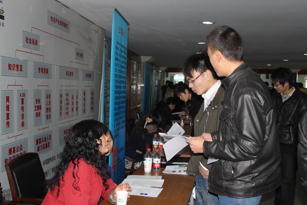 2011年1月13日上午,学院2010届知识产权职业方向毕业生专场招聘会在温州市知识产权服务园举行。中国人民电器集团、中国瑞立集团、人本集团、中国汇润机电有限公司等26家知名企业参加招聘会并提供了130个招聘岗位。招聘会取得良好效果,40多名学生与企业达成初步意向,企业对本次招聘会非常满意,部分企业与学院就业处交流了进一步加强合作意愿。