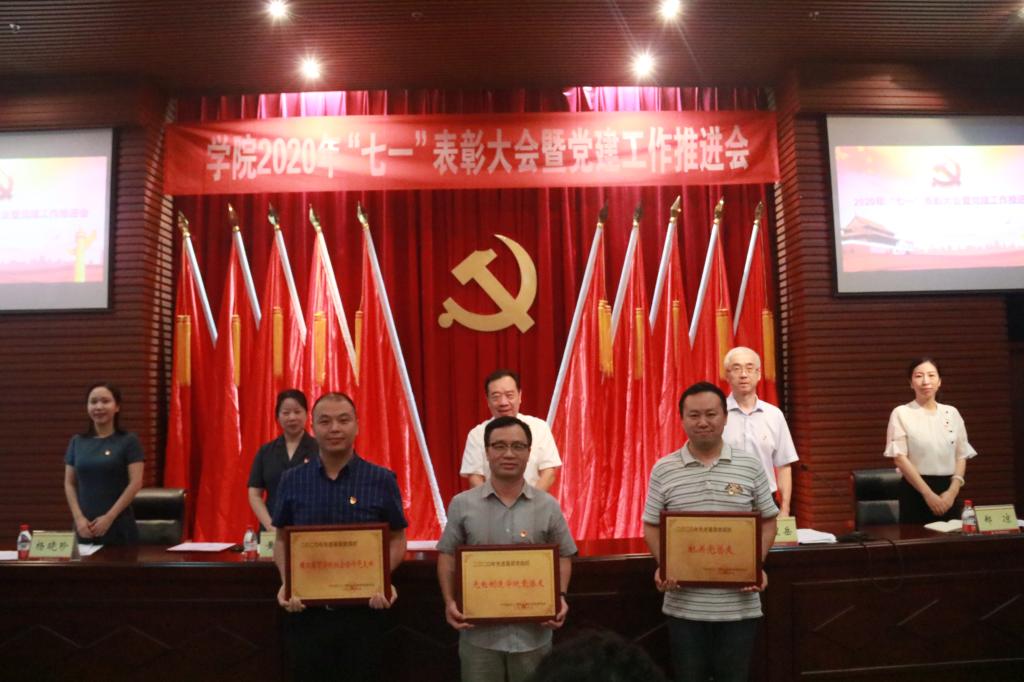 会议在庄严的国歌声中开始。首先,由学院党委委员、组织部(统战部)部长郑凉同志通报2020年上半年学院基层党组织、党员在省市获奖情况,宣读学院疫情防控优秀党员、先进基层党组织表彰文件和学院2020年“两优一先”表彰文件。