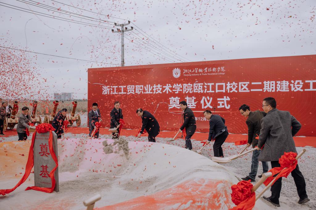 杭钢集团党委书记、董事长张利明,总经理林亮等为学院瓯江口校区二期建设工程奠基