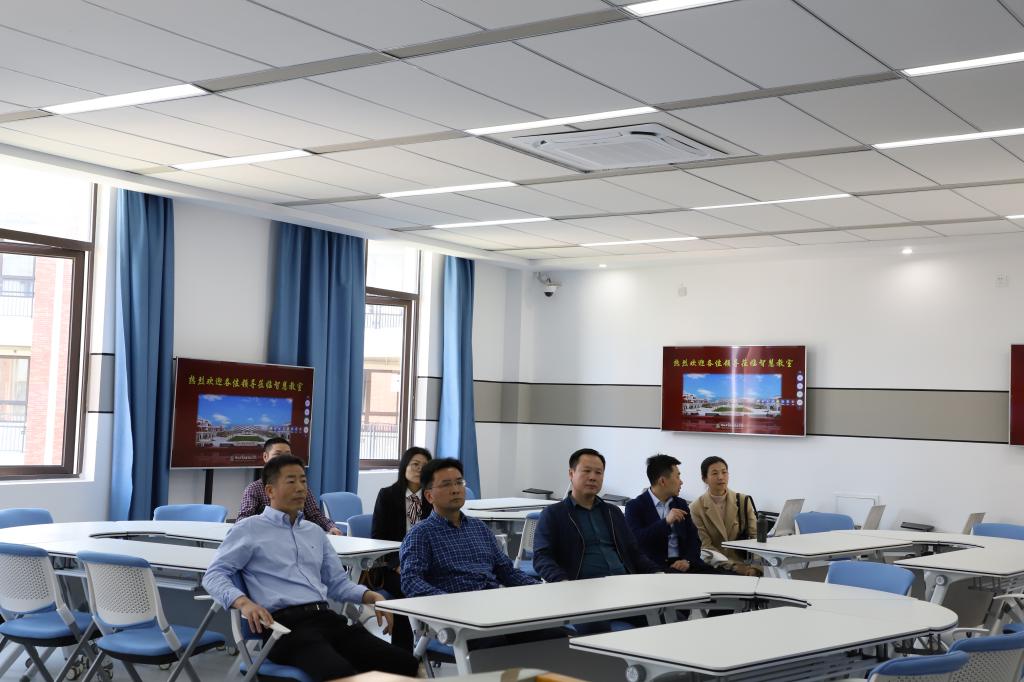 杨青一行参观了我校瓯江口校区办学成果展、数字化阶梯教室、公共教学楼智慧教室、资讯楼图书馆、光电制造学院等场地。随后一行来到府东路校区考察了我校温州知识产权服务园、温州知识产权学院、国家数字经济高技能人才培训基地、浙江创意园、国家广告产业园、省级工业设计示范基地等场地。考察走访期间,王春柳介绍了学校新校区建设、后勤保障服务、人才培养等办学情况,杨青对我校办学历史和一校两区办学成绩给予高度评价,并简要介绍了南京科技职业学院相关情况。