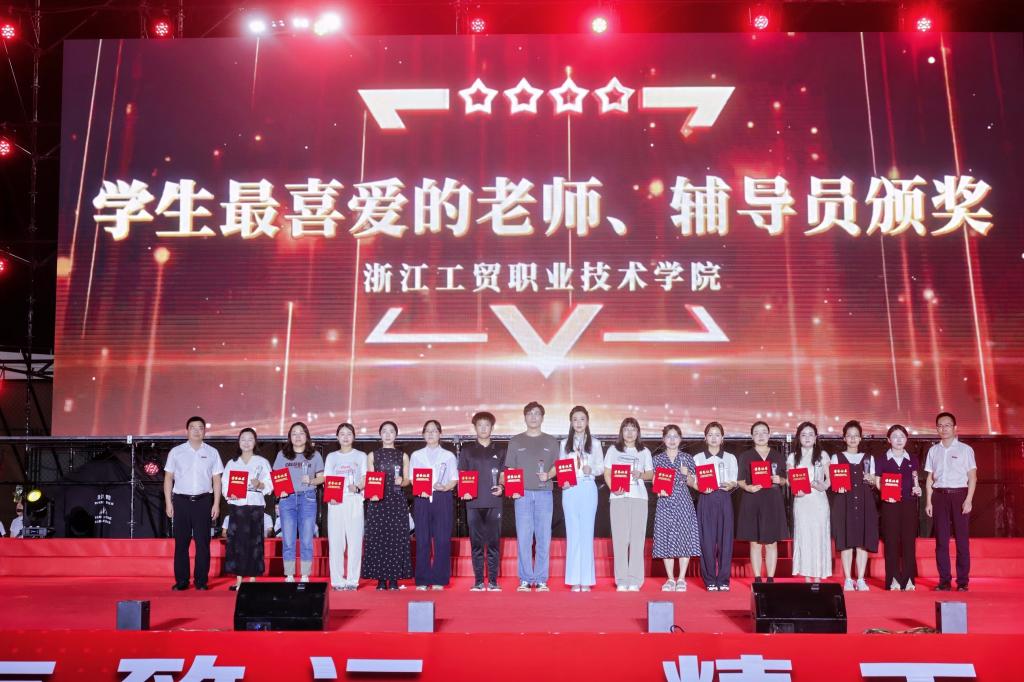 张志东、余闯为学生最喜爱的老师、辅导员获奖者颁奖。