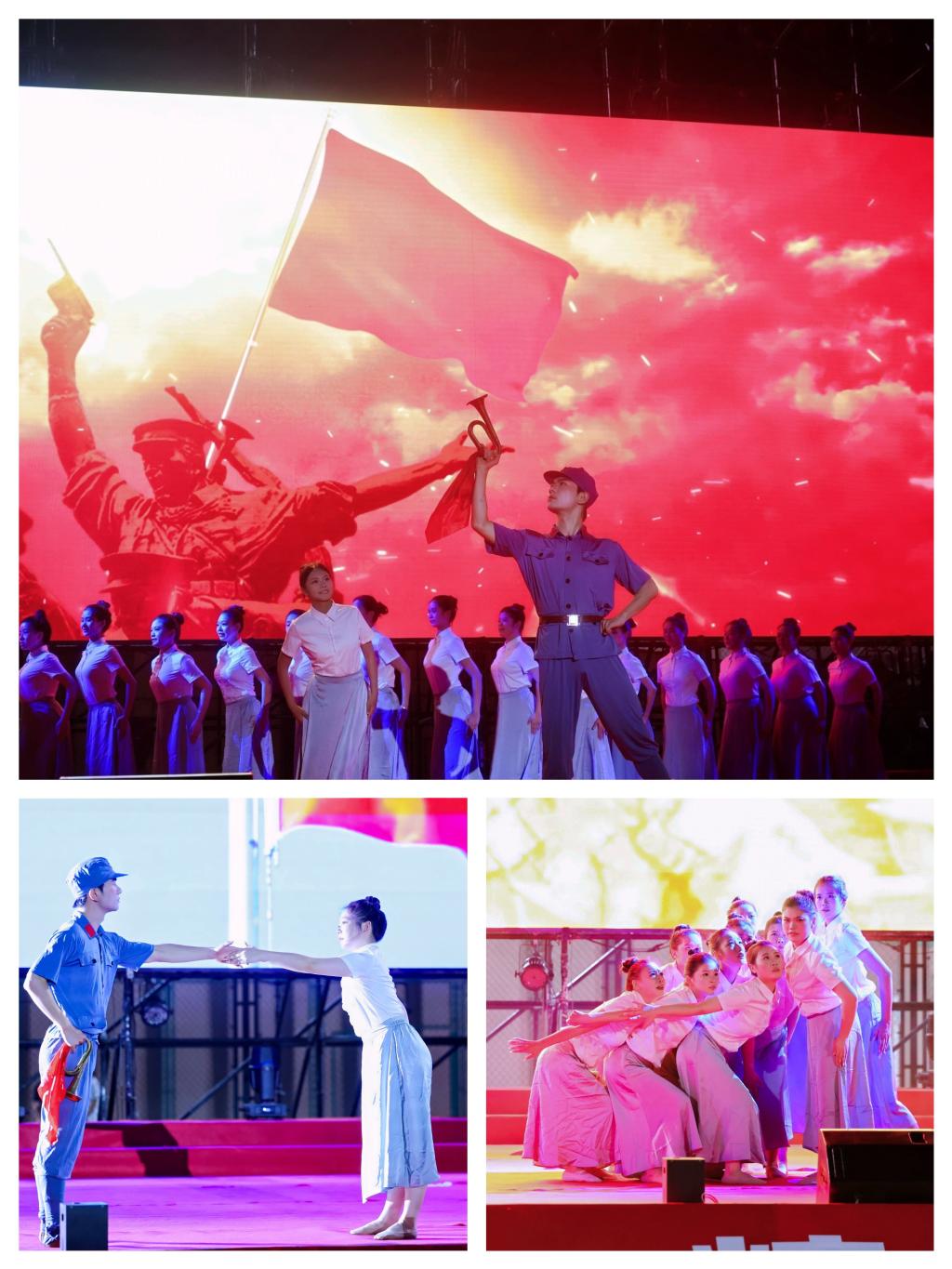 充满力量感的舞蹈《你好,小号手》在庄严、饱含敬意的氛围中瞬间将全场带入情境。肢体腾跃,刚劲有力的舞姿瞬间震撼全场,动作如战鼓,每一个姿态都诉说着红军小号手的奉献与牺牲,传递着对先烈革命精神的追思与对祖国的赤诚热爱将军人的忠诚与担当,在舞台上演绎得淋漓尽致。