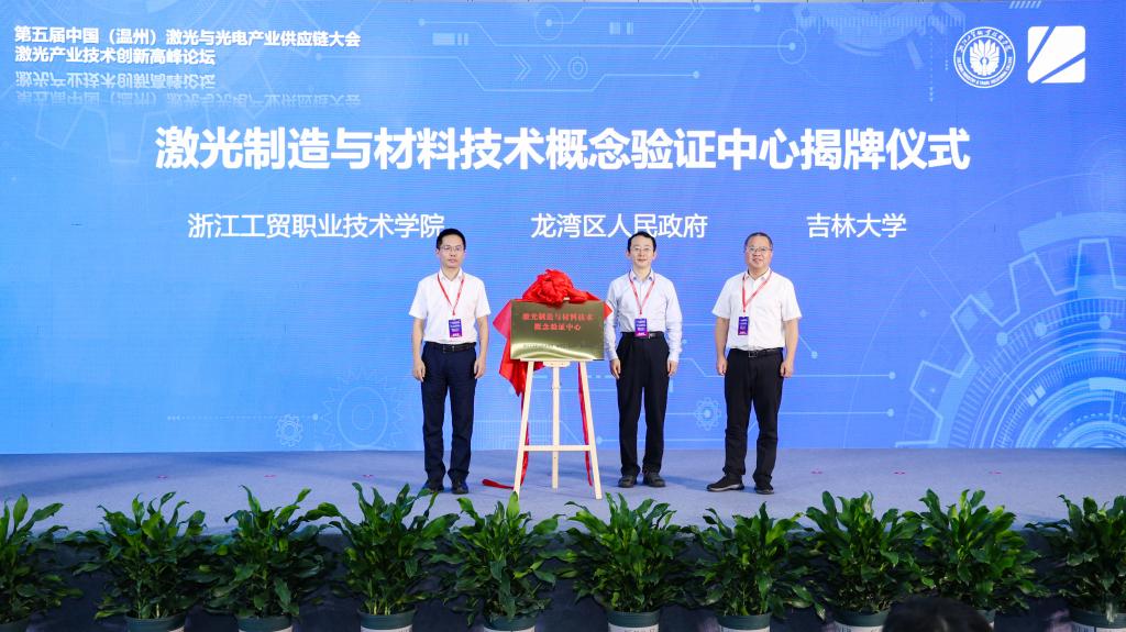 激光制造与材料技术概念验证中心进行揭牌。“激光制造与材料技术概念验证中心”由浙江工贸职业技术学院、龙湾区人民政府和吉林大学共同建设,打造浙南地区首个面向超快激光微纳制造技术的概念验证中心,服务于温州“5+5+N”产业集群。