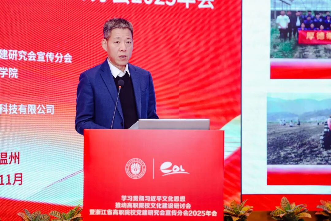 为深入学习贯彻党的二十届四中全会精神、习近平文化思想和省委十五届八次全会精神,推动高职院校切实担负起做好新时代新征程宣传思想文化工作的使命,11月25日-26日,由浙江省高职院校党建研究会宣传分会、浙江工贸职业技术学院(以下简称浙工贸)主办,中国教育在线、北京中教互联教育科技有限公司协办的学习贯彻习近平文化思想推动高职院校文化建设研讨会暨浙江省高职院校党建研究会宣传分会2025年会在温州成功举行。