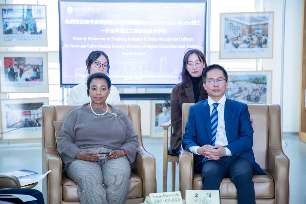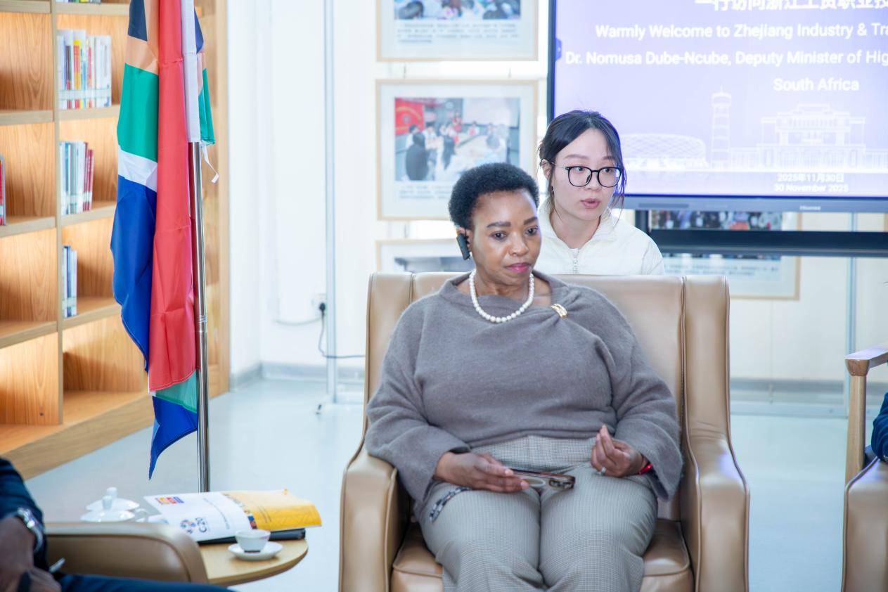 余闯对代表团的来访表示热烈欢迎,并介绍了学校发展概况。他指出,学校与南非政府、高校及行业机构长期保持密切合作,共建的南非丝路学院(南中数字技术学院)先后入选浙江省“一带一路”丝路学院和“未来非洲—中非职业教育合作特色项目”,取得系列务实成果。希望南非高等教育与培训部在政策对接、校际合作与留学生发展等方面继续提供支持。学校将积极引导师生把对中南友好的真挚情谊转化为务实行动,通过深化职业教育合作,共同为中南关系发展谱写新的篇章。