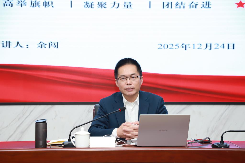为深入学习贯彻党的二十届四中全会精神,准确把握其核心要义与实践要求,推动学院事业高质量发展,12月24日下午,现代管理学院在瓯江口校区行政楼104会议室举行专题宣讲会。学校党委副书记、校长余闯教授应邀作主题宣讲。现代管理学院领导班子成员、师生代表共80余人参加学习,宣讲会由学院党总支书记邵超群主持。