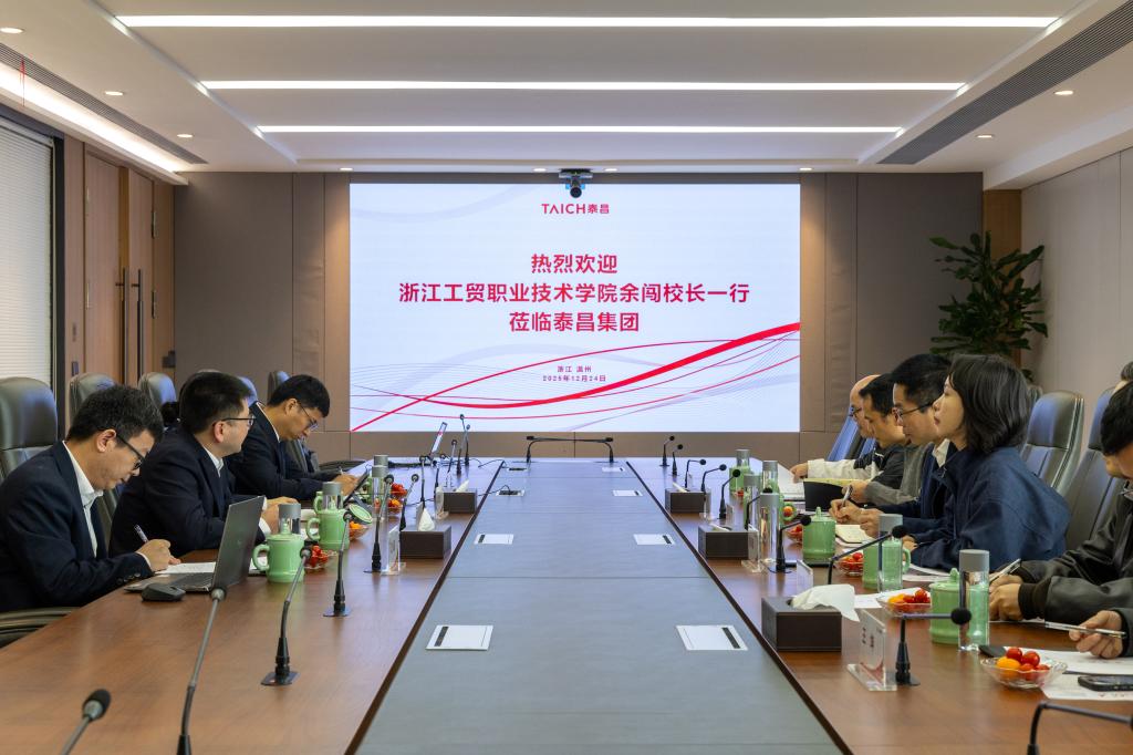 12月24日上午,浙江工贸职业技术学院党委副书记、校长余闯率队赴泰昌集团有限公司开展调研交流,旨在进一步全面深化校企合作,共同推进温州湾新区产教联合体、全国金属新材料产教融合共同体建设,探索教科人一体化改革。泰昌集团董事长兼总裁张鹏飞接待,学校党委委员、副校长杨晓珍,以及教务处、科研处、产教融合处、光电制造学院等相关职能部门和二级学院负责人随行。