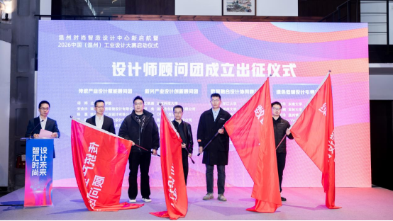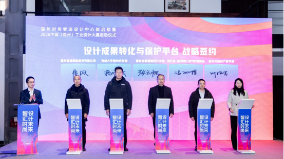 2026中国(温州)工业设计大赛作为温州工业设计领域的年度盛事在活动中正式发布。王振勇、张志东、陈胜军、余闯、市工业设计协会会长倪秀华等共同按下启动键,标志着温州时尚智造设计中心正式全新启航,并启动大赛。