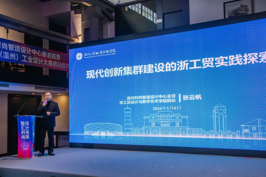1月6日上午,“智汇时尚·设计未来”——温州时尚智造设计中心(以下简称“中心”)新启航暨2026中国(温州)工业设计大赛启动仪式在浙江工贸职业技术学院(以下简称“浙工贸”)浙江创意园举行。