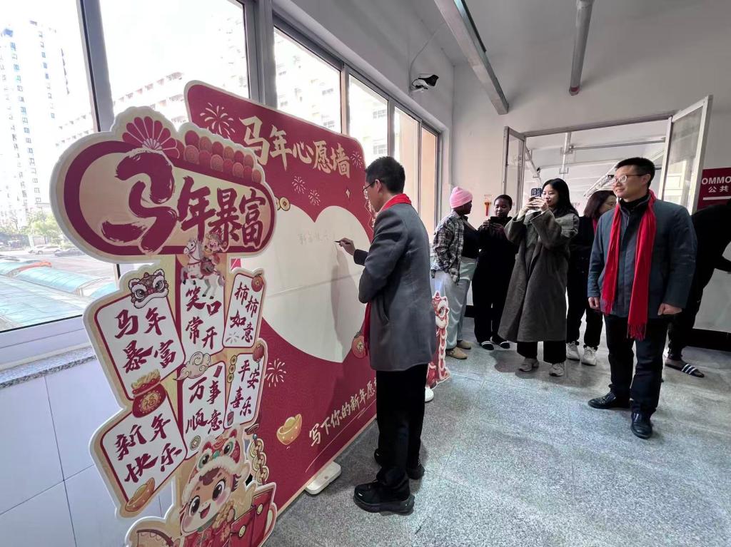 为传递学校对国际学生的关怀,让异国求学的留学生感受中国新年氛围与家的温暖,2月2日下午,校长余闯、副校长汪焰在国际教育学院负责人陪同下走访慰问留学生宿舍,并与全体留学生共同开展马年新春庆祝活动。