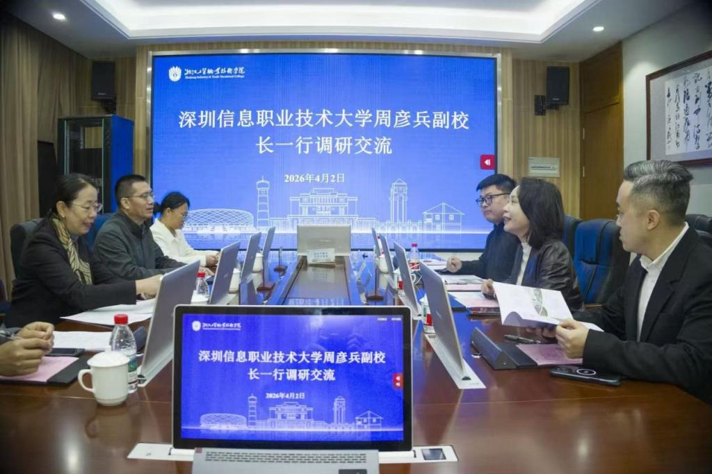 4月2日,深圳信息职业技术大学党委委员、副校长、工会主席周彦兵一行来我校瓯江口校区调研交流。学校党委委员、副校长杨晓珍热情接待了调研组。