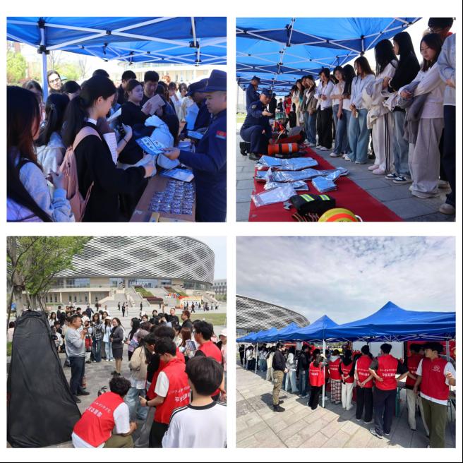 仪式前后,现场设置消防设施展示区、模拟灭火体验区,同学们有序参观消防器材、动手操作模拟灭火设备,亲身体验“提、拔、握、压”灭火操作与火场逃生要点,在实践中掌握实用安全技能。