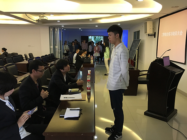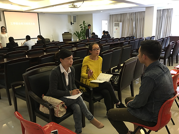 企业负责人向应聘者介绍实习工作内容