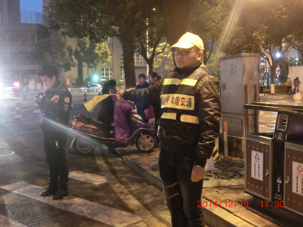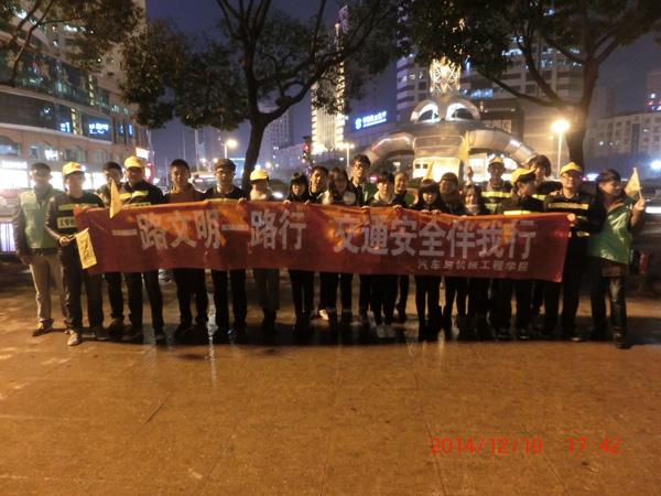 为响应市政府建设文明城市的号召,提高市民的交通文明道德素质,12月19日学院绿色啄木鸟志愿队在物华天宝十字路口开展主题为“一路文明一路行 交通安全伴我行”的交通劝导活动。