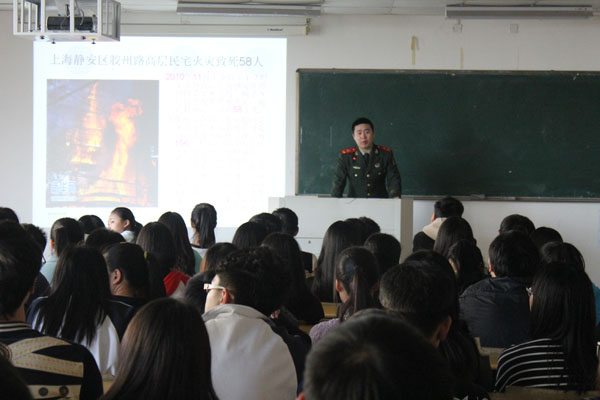 据朱彦龙警官介绍,火灾就是在人为能力控制之外的非正常燃烧,他用PPT十分形象地为大家列举了近年发生在中国高校校园中的火灾事件,给同学们心中敲响了预防火灾的警钟。随后,朱警官及时地教大家用电安全,还有火场逃生的正确做法。讲座最后,轻工系任志杰书记上台讲述了院系过去几年发生过的校园寝室安全事故,警醒同学们消除侥幸心理,校园安全问题必须严肃对待,不能有丝毫掉以轻心。
