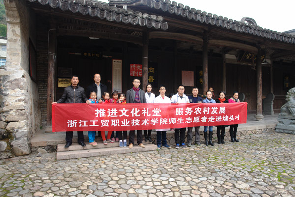 据悉,学院轻工系已连续五年在埭头村开展社会实践服务活动。今年暑期在文化礼堂开展开蒙礼、诵读弟子规、村民舞蹈比赛等服务项目。该社会实践基地今年被共青团温州市委授予温州市级社会实践基地。
