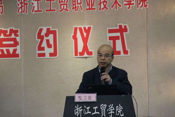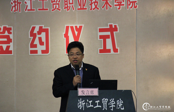 会上,我院经济与贸易分院院长汪焰,申瓯通信设备有限公司董事长、中国通信工业协会副会长、温州市总工程师研究会会长、鹿城区电子信息行业协会会长蔡春潮,浙江长城减速机有限公司董事长虞培清分别代表学院、行业、企业以“校企合作·产教融合”为主题作了发言。张俊平副院长和鹿城区人力资源和社会保障局局长吴晓贵代表双方签订校企合作协议。
