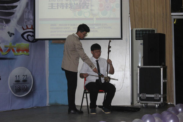 比赛开始环节,十位选手各具风采充满创意的自我介绍,令人眼前一亮,展示了他们平凡中的不凡,在观众心中留下了深刻的印象。第二环节是自由朗诵,选手们抑扬顿挫,感染到了在场的评委和观众,爱情诗,风景诗,爱国诗,令人身临其感。第三环节,“主持我当先”更是精彩纷呈,选手们学着电视上的节目,像模像样地将主持搬到了舞台,引来阵阵欢笑与雷鸣掌声,可见咱们选手不凡的能力。最后一个环节“时事评论”,选手们在30秒内急中生智,犀利点评。在评委和嘉宾激烈地讨论评分时,各类轻松有趣的游戏将现场气氛推至高潮。