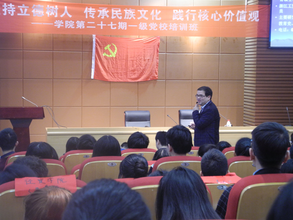 2014年11月22日至29日,由党务工作部主办、学工部党建服务中心承办的学院第二十七期一级党校在6号教学楼学术报告大厅举行,共有170多名学员参加了此次培训。