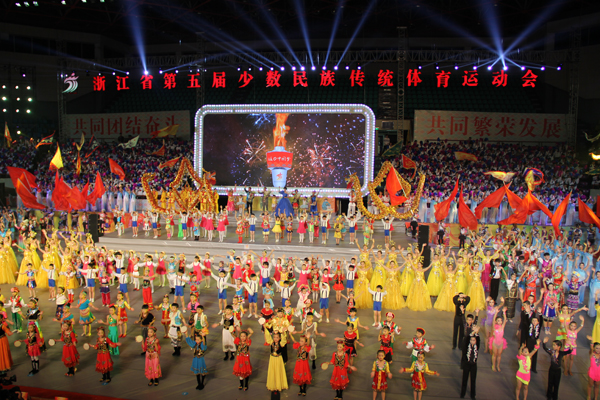 据悉,本届少数民族传统体育运动会是浙江省有史以来参赛人数最多、规模最大的一次少数民族体育盛会。来自全省11个市和1个畲族自治县,24个民族组成的12个代表团,共计665名运动员将参加蹴球、陀螺、射弩、高脚竞速、板鞋竞速、押加、武术、珍珠球、秋千、民族健身操等10个竞赛项目和竞技、综合2类表演项的角逐,正式比赛为期三天。