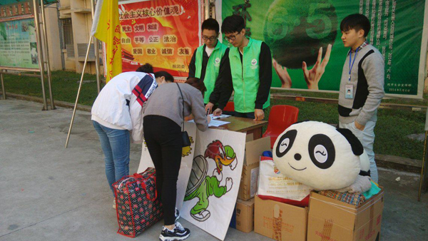活动期间,每天早上7点,志愿者们就开始进行募捐的准备工作,在学子广场上布置募捐点,摆上活动版块,拉上志愿队的旗帜。师生们参与活动的热情很高,募捐点常常聚集很多前来捐赠的同学,还有老师开车过来捐赠物资。在收集募捐物资的过程中,志愿者们会留下募捐者的联系方式,承诺将在活动结束后,把衣物的去向告诉募捐者,做到志愿活动信息公开透明。