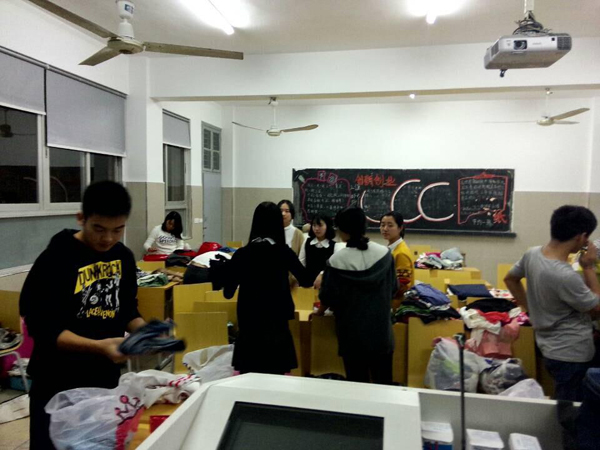 啄木鸟志愿队的志愿者利用课余时间在教室整理清点同学们的衣物,并及时联系有需要的社区和慈善机构准备捐赠。绿色啄木鸟志愿者用他们绿色的身影贡献自己力量,争取在严冬来临之前将同学们的爱心捐助发放到有需要的人们手里。