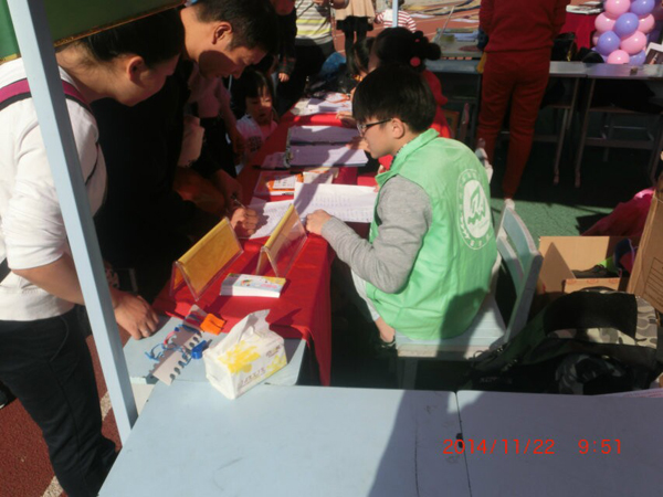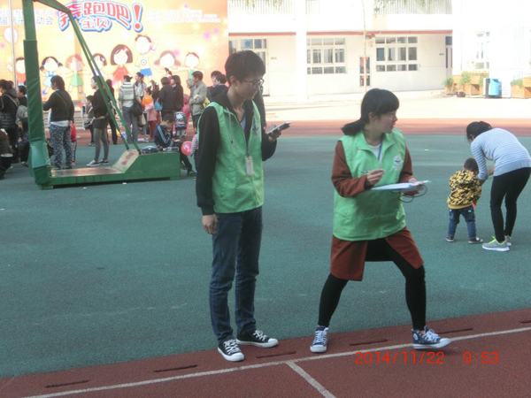 志愿者们除了场地布置的任务之外,还须协助老师和家长带领小朋友们参加活动,并活跃现场气氛。与此同时,汽机学院绿色啄木鸟志愿者们对现场秩序的维持也使活动进行得井然有序。中午,比赛结束,志愿者协助主办方清理场地,整理好道具。