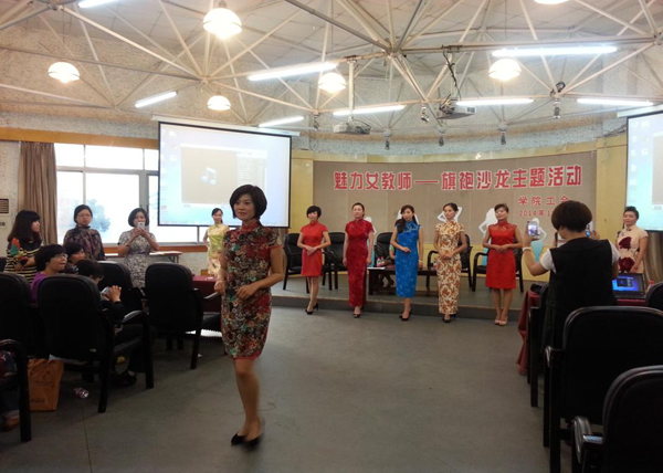 为了展示我院女教职工们的美丽、典雅、贤淑,结合学院所倡导的“敬、静、净、雅”教职工行为规范,学院工会于10月31日下午在一号教学楼多功能厅举办了魅力女教师——旗袍沙龙主题活动。此次活动邀请了温州东方千金服饰公司董事长余微微女士参加。