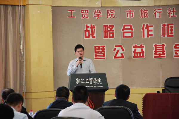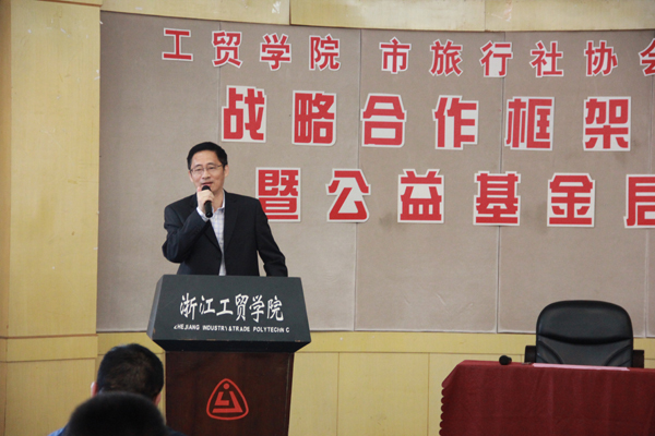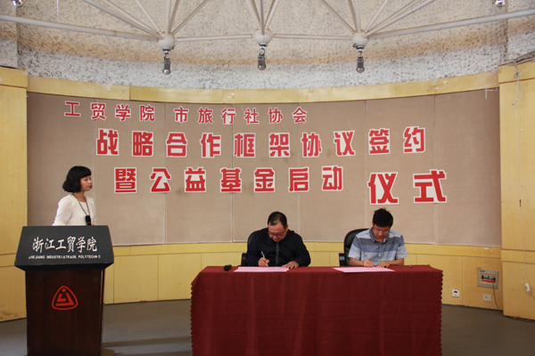近日,我院管理学院与温州市旅行社行业协会签署战略合作框架协议,同时启动了旅行社行业协会为分院旅游专业学生专门设立的公益基金。管理分院为温州市旅行社行业协会“副理事单位”,学院副院长张俊平为温州市旅行社行业协会名义会长、管理学院潘毅院长为协会副秘书长。市旅游局副局长陈秉辉、温州市旅行社行业协会会长王小洪分别向我方人员颁发聘书和授牌。