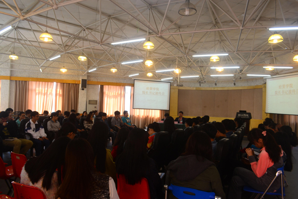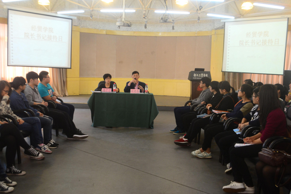 11月4日中午,经贸学院在多功能厅开展了院长书记接待日活动。经贸学院党总支书记项光春,办公室主任潘芒芒,团总支书记高莎,以及大一、大二各班班长和团支书等出席了本次活动。