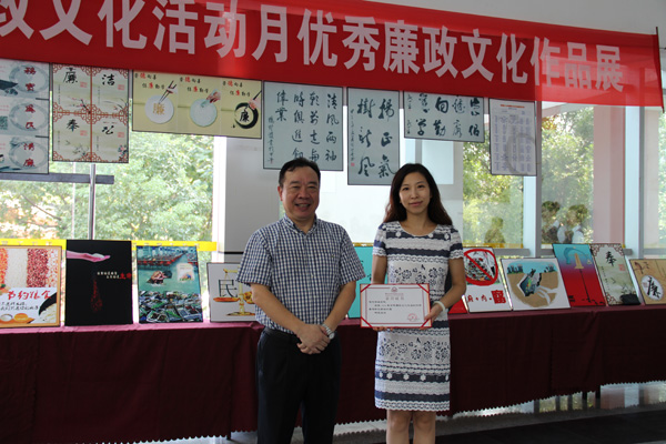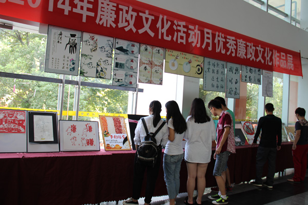 当天中午,在学院六号楼一楼大厅举行了2014年廉政文化优秀作品颁奖仪式。33名师生在本次活动中获得奖项,信息传媒学院获得优秀组织奖。优秀作品集中展示吸引了众多师生驻足观看。