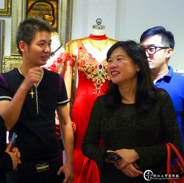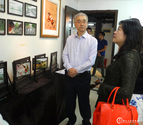 在参观浙江创意园的过程中,李永萍理事长逐一了解了园区定位、发展以及入驻企业情况。李永萍理事长被瓯塑、瓯绣精致的制作工艺所折服。在参观名购网的展示平台前,李永萍理事长感叹的说:“学院真是个具有企业精神的学校”。她热情邀请园区入驻企业来台湾参加文博会。园区负责人详细介绍了学院基于创新创业理念,依托学校、园区、城市联动发展,构建形成“学园城互动生态圈”的特色办学模式。