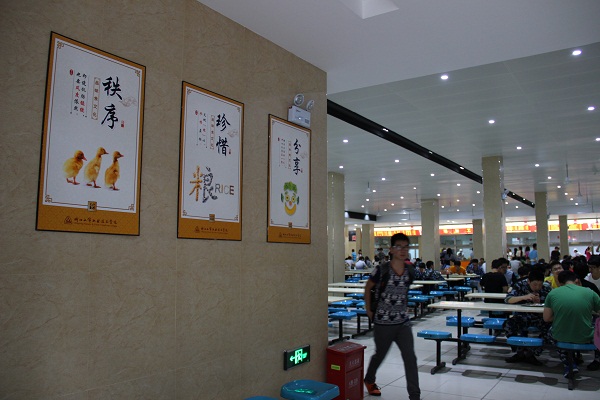 据了解,暑假期间,学院对食堂、公寓、小花园、生活超市等多处场所进行了翻修升级,老师工人们加班加点,赶在9月初,为师生们送上一份开学礼。墙壁更白了,横幅更加鲜艳了,修剪过的树木在雨水的洗刷下,显得更加精神挺拔。